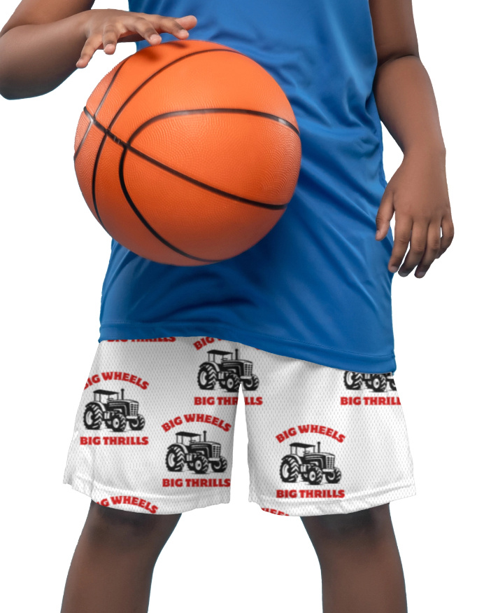 Let your little one roll into fun and adventure with our “Big Wheels Big Thrills” Kids’ Basketball Shorts! 🚜✨