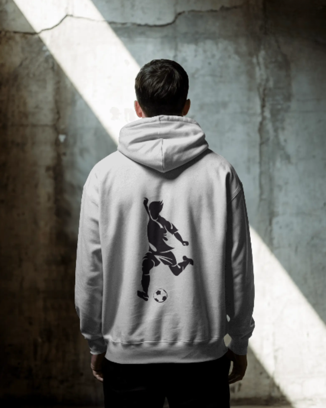 Energetic footballer artwork on the back for a sporty edge