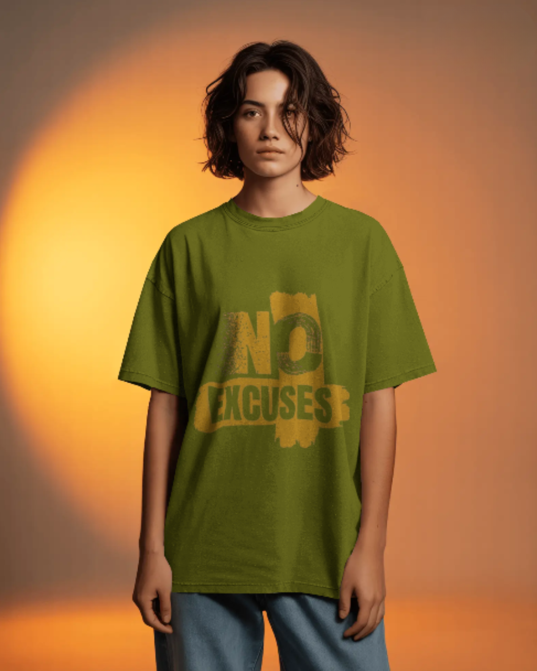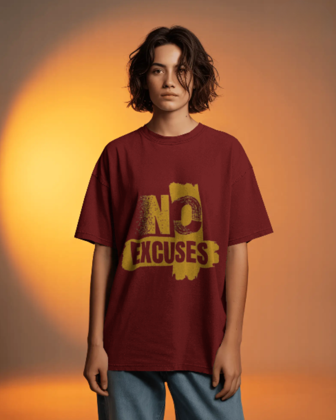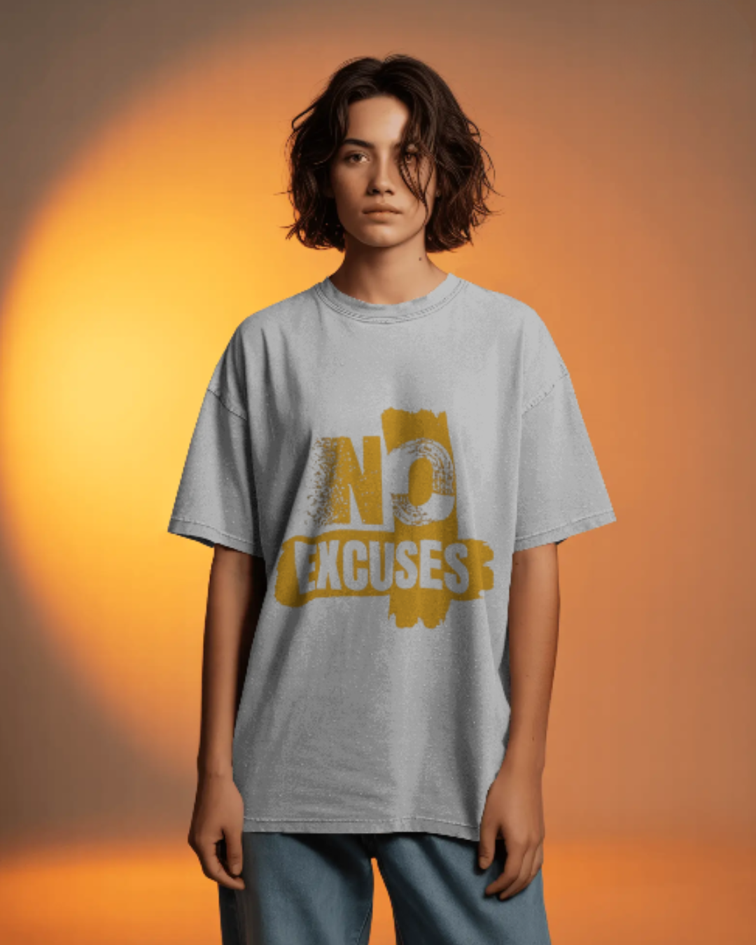 Own your grind with our NO EXCUSES Oversized Unisex T-Shirt — a bold, statement-making piece designed for those who show up, push harder, and never back down. Crafted from premium soft cotton, this tee blends streetwear edge with motivational energy, making it perfect for everyday wear, workouts, or casual styling. The oversized fit adds a relaxed, modern silhouette, while the loud “NO EXCUSES” graphic pushes you to stay focused and unstoppable.