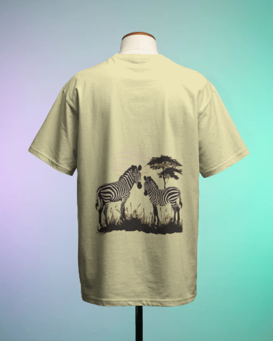 Step into the wild with the “Safari Spirit Zebra Oversized T-Shirt,” crafted for lovers of nature, art, and bold minimalistic style. The front features a detailed zebra head illustration designed with lifelike shading, while the back showcases a serene savannah scene with two zebras under an acacia tree — creating a complete story from front to back. Made from premium soft cotton, this tee blends comfort with statement style, perfect for everyday wear or street-inspired outfits.