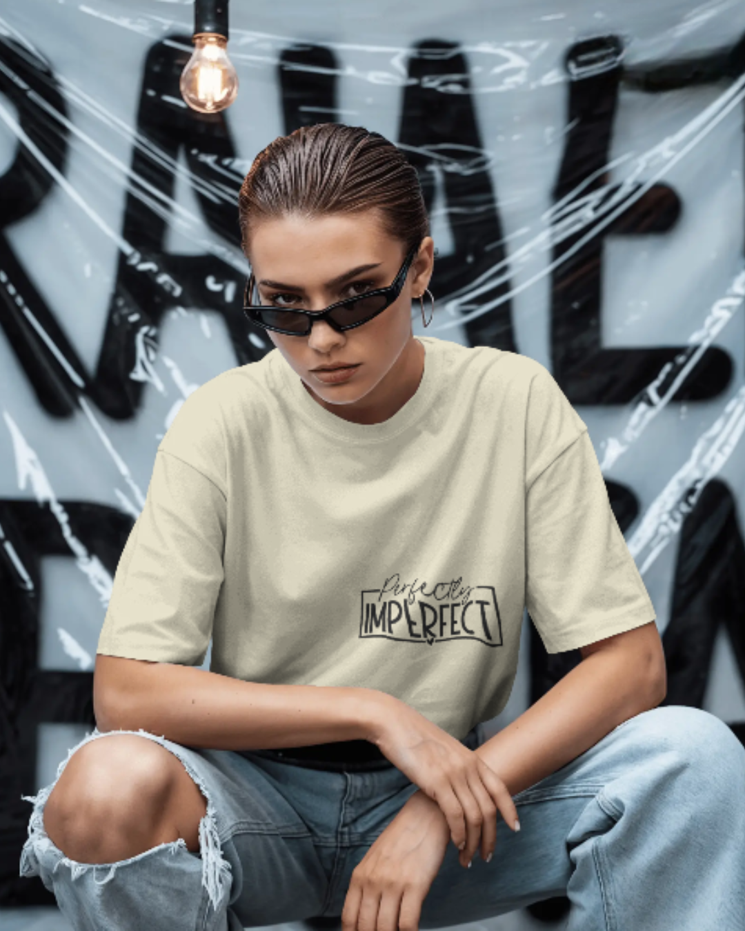 Embrace your unique vibe with the Perfectly Imperfect Statement T-Shirt, a bold expression of individuality. This relaxed-fit cream tee features a stylish “Perfectly Imperfect” print, blending comfort with a powerful message. Crafted from soft, breathable 100% cotton, it offers a comfortable fit with a crewneck and short sleeves, perfect for everyday wear or casual outings. Machine washable and durable, this tee is a must-have for those who celebrate imperfections. ✨ Features: