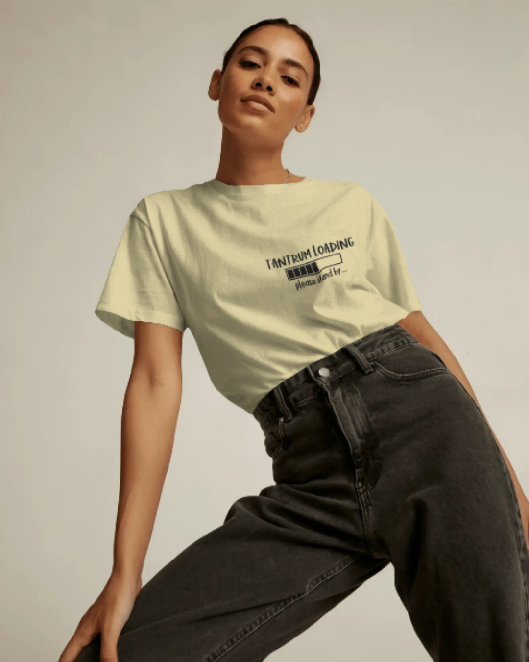 When life tests your patience, wear your warning sign loud and clear 😎. The “Tantrum Loading” Graphic Tee is for the days when your sass levels are buffering and your chill is on low battery.