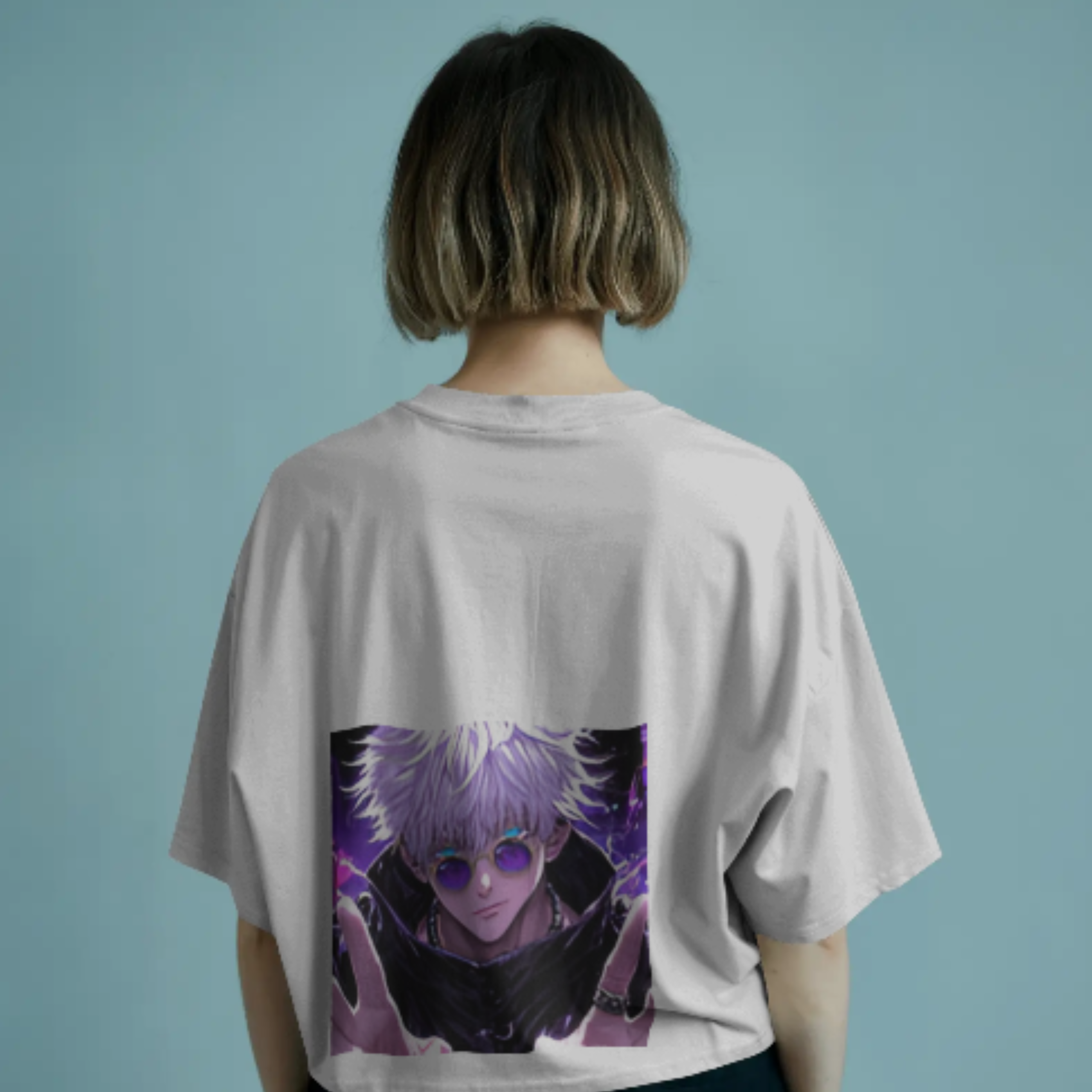Design: Features minimalist “Satoru Gojo” text on the front and a bold, high-resolution graphic of Gojo in his iconic look on the back – perfect for fans of Jujutsu Kaisen who like to keep it lowkey in the front, and all-action in the back!